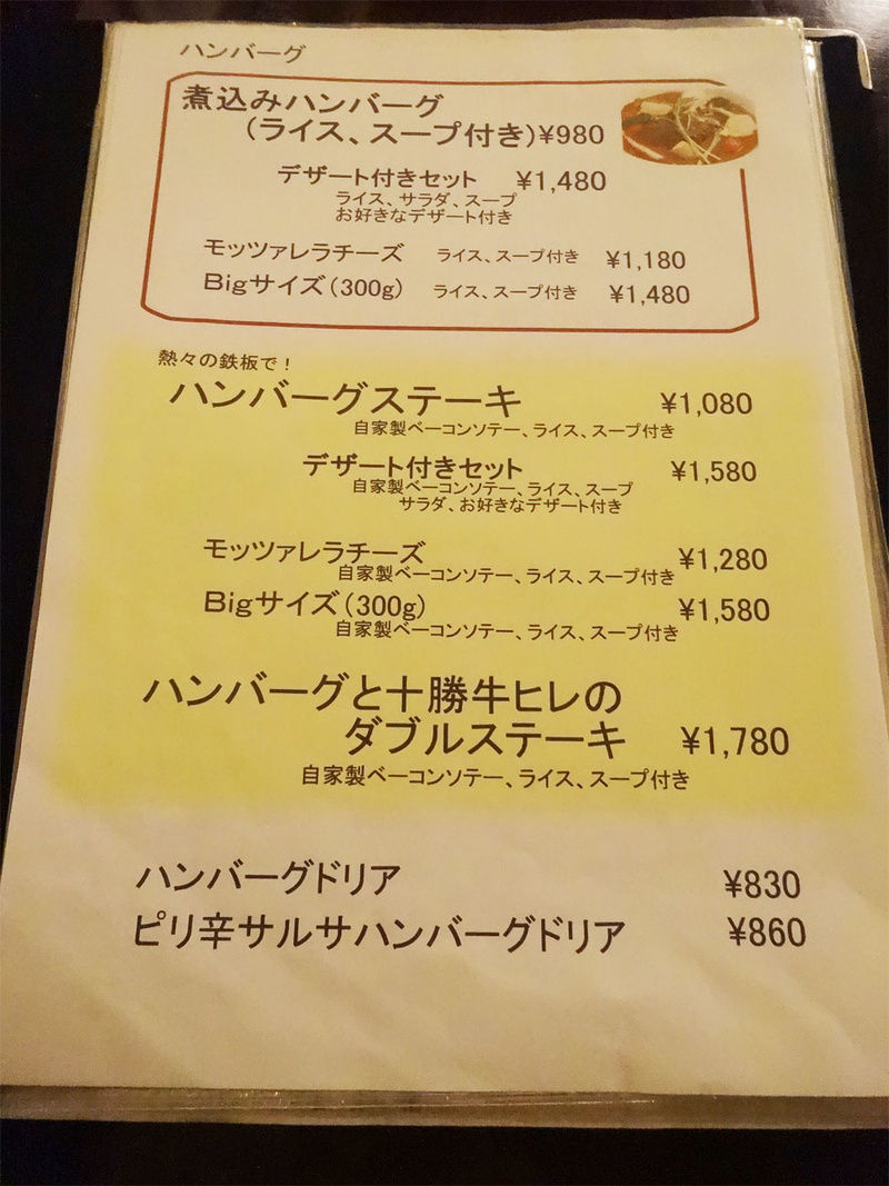 足が遠のいていましたが、鉄板ハンバーグもあるとの情報で初訪問してみました