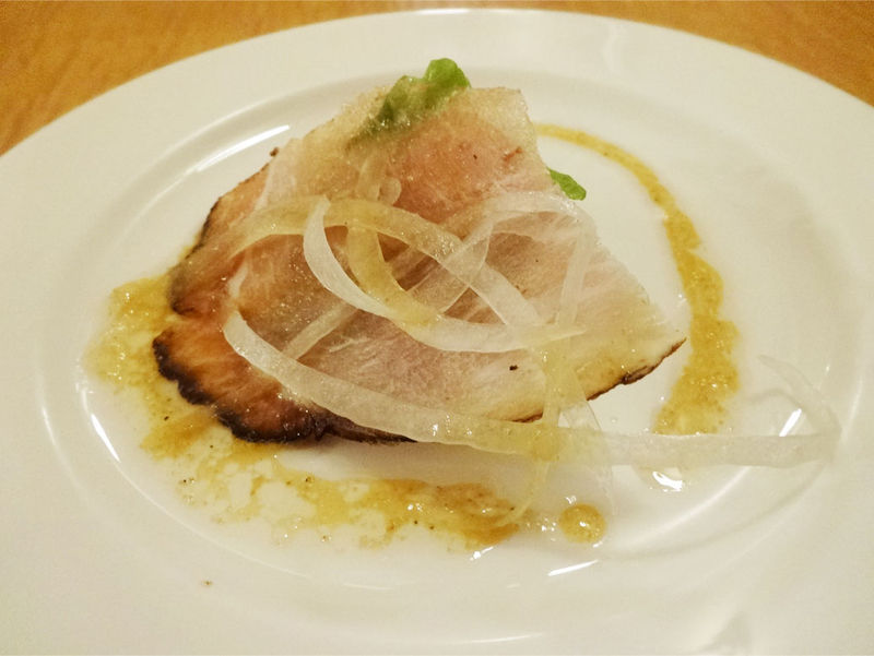 どの料理にも付いてくるのか、メインの前に前菜として「自家製生ハム」が登場して