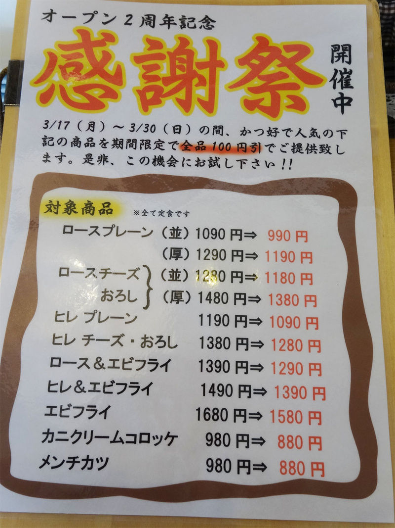 2周年記念メニュー