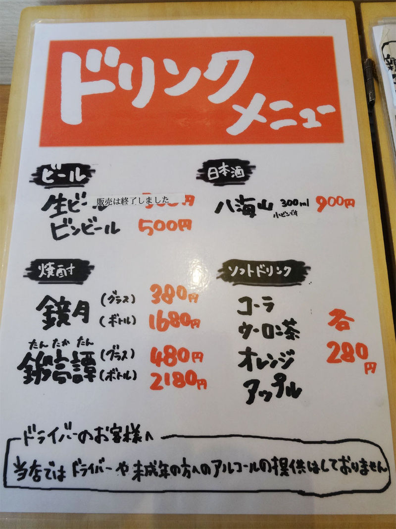 ドリンクメニュー