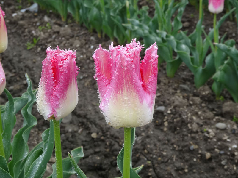 咲き終わったチューリップは順番に刈り取られ茎だけになているものもありました。