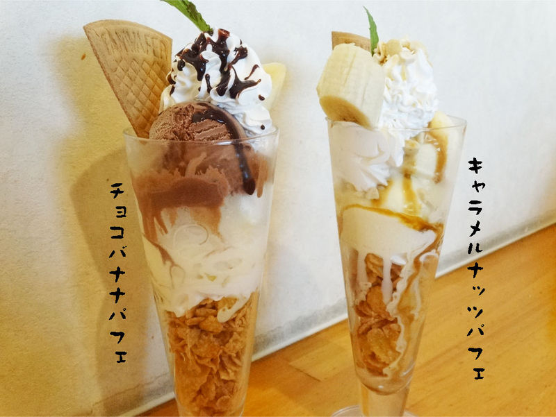 チョコバナナパフェ(712円)・キャラメルナッツパフェ(756円)