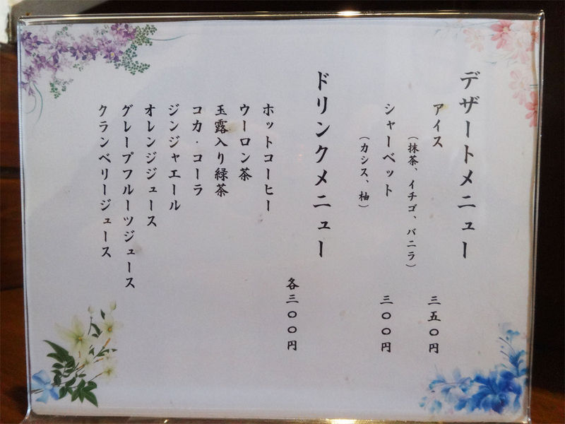 デザートドリンクメニュー