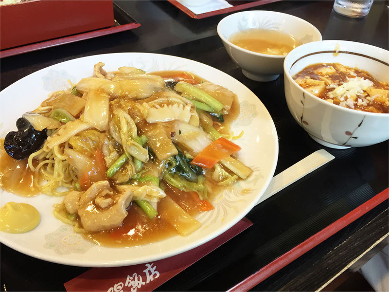 五目あんかけ焼きそば&ミニマーボー丼セット(900円)五目あんかけ焼きそば