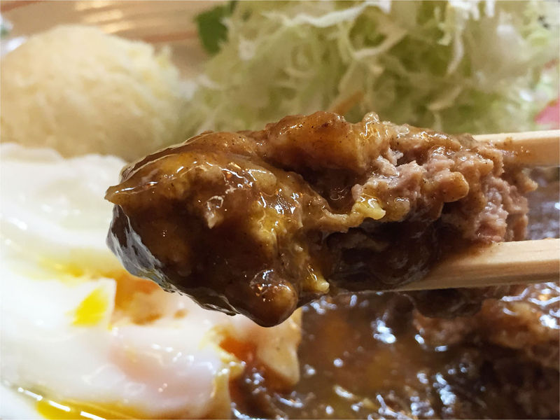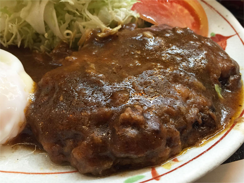 スパイシーなハンバーグに濃厚デミソースで、美味しいですねq(・ェ・q)ルン♪