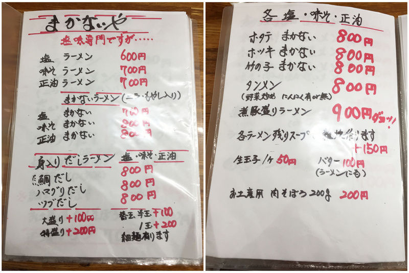 今は全種類のラーメンがあるとの事。しかもハマグリ出汁や鯛出汁など