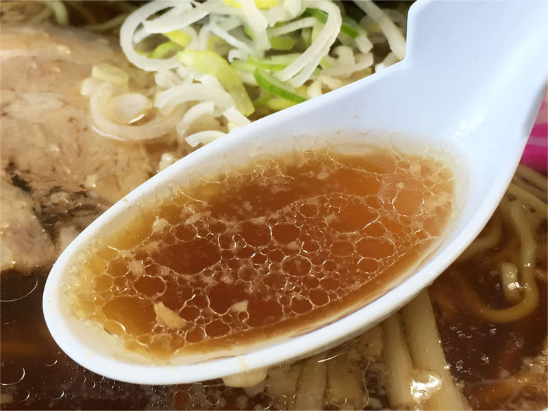 想像では昔ながらのあっさりラーメンかと思いきや。。。背脂が乗った、油膜のあるラーメンです!