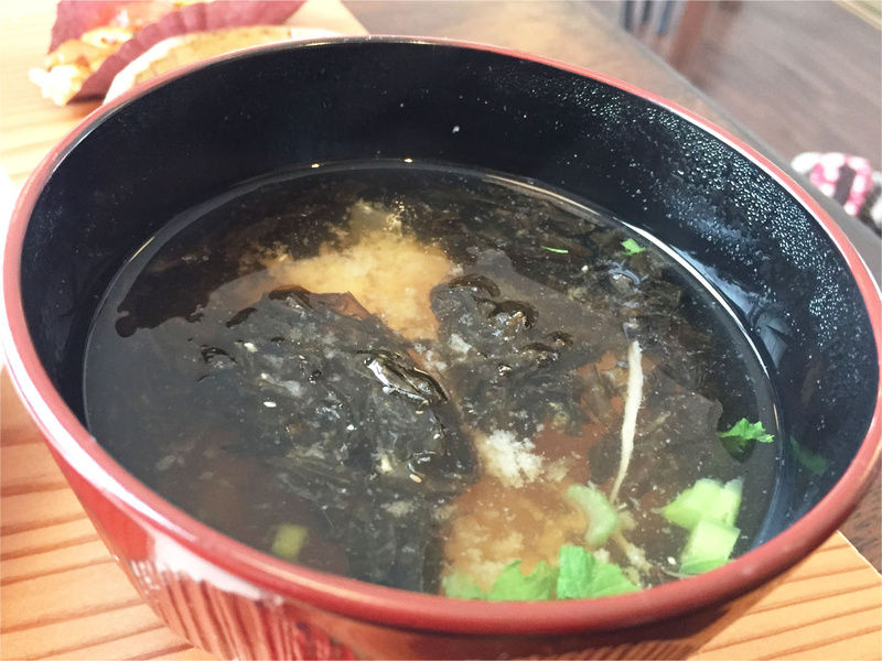 四つ葉ごはんとケーキ(1380円)ごぼうと大根とのりとからし菜のお味噌汁