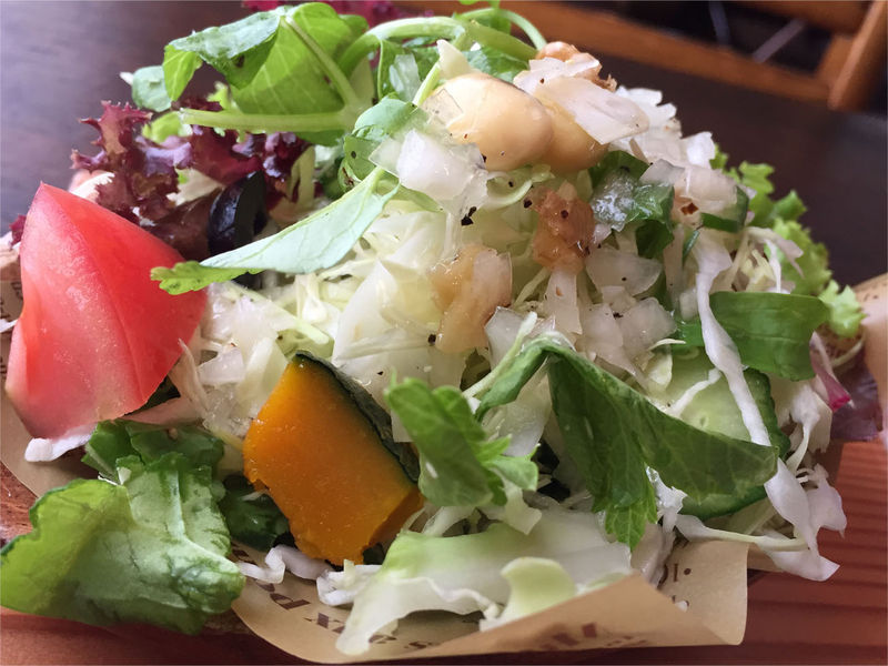 色々な野菜がたくさん入ったサラダも新鮮シャキシャキでドレッシングも手づくりなのかな?
