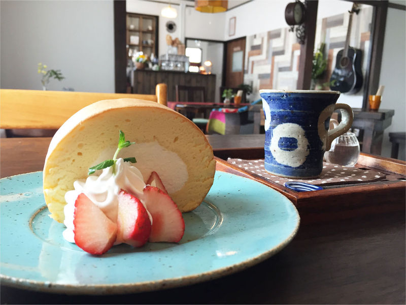 四つ葉ごはんとケーキ(1380円)苺のロールケーキ