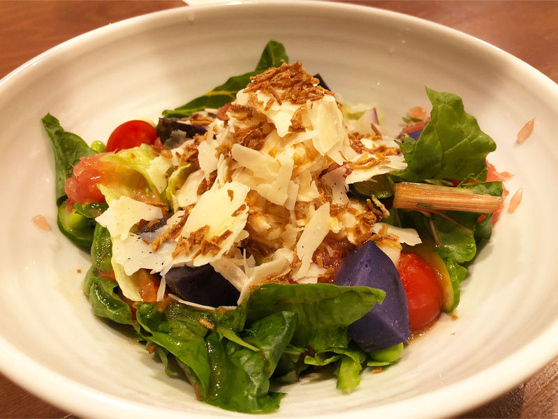 サラダは、色々な種類の野菜が入っていて、名前の通りパワーが出ます!こちら4人盛りです。