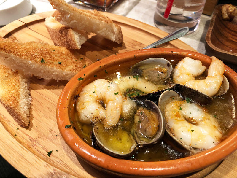 冷えた身体に染みわたるアヒージョは、プリプリの海老をハフハフしながら頂きます(o´▽`o)