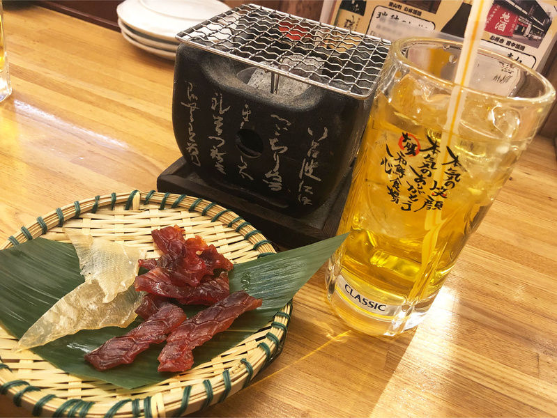 こちらのお通し好きです(´∀`) 炙って食べるトバとエイヒレ