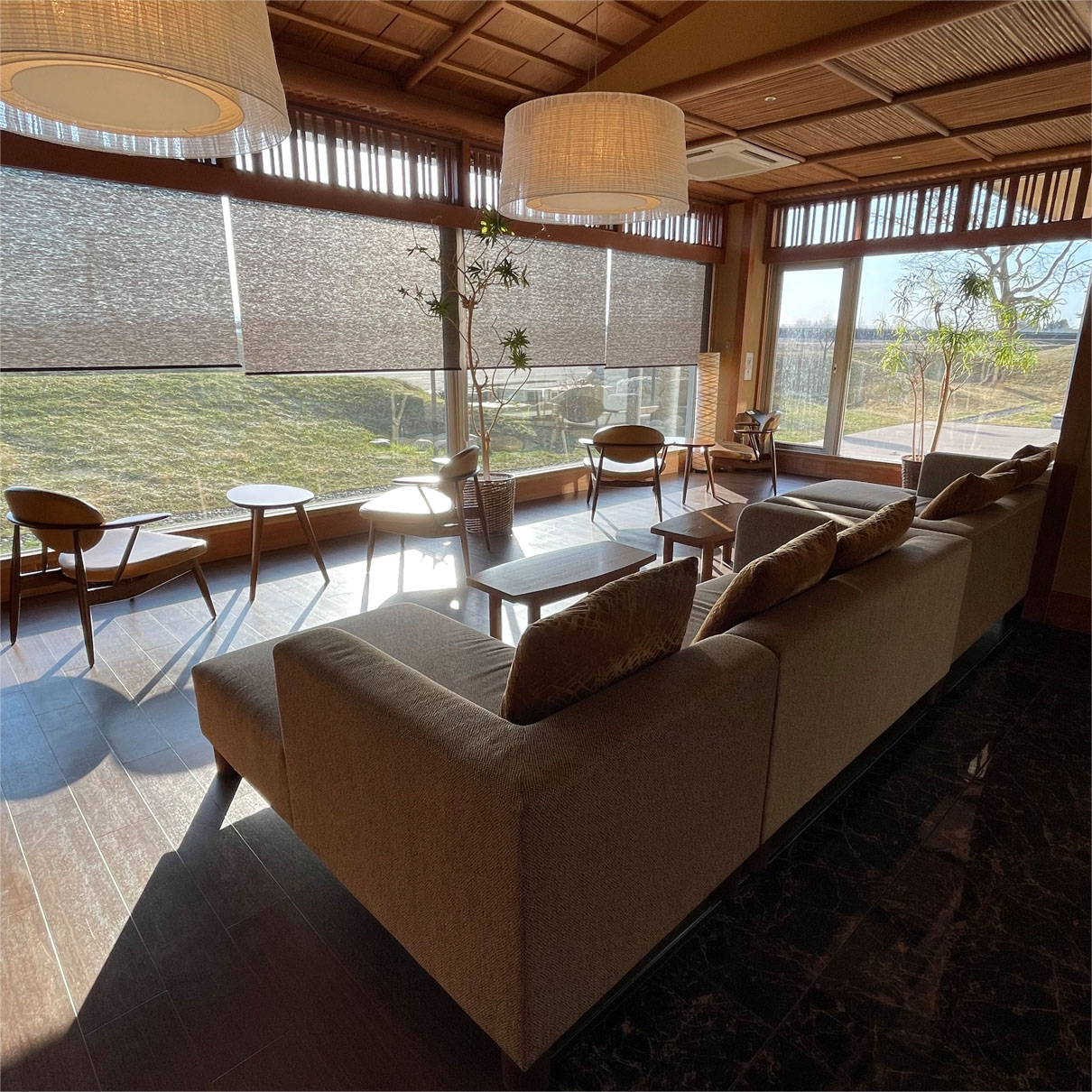 宿泊者と日帰りのお客さん、誰でも利用できる場所には