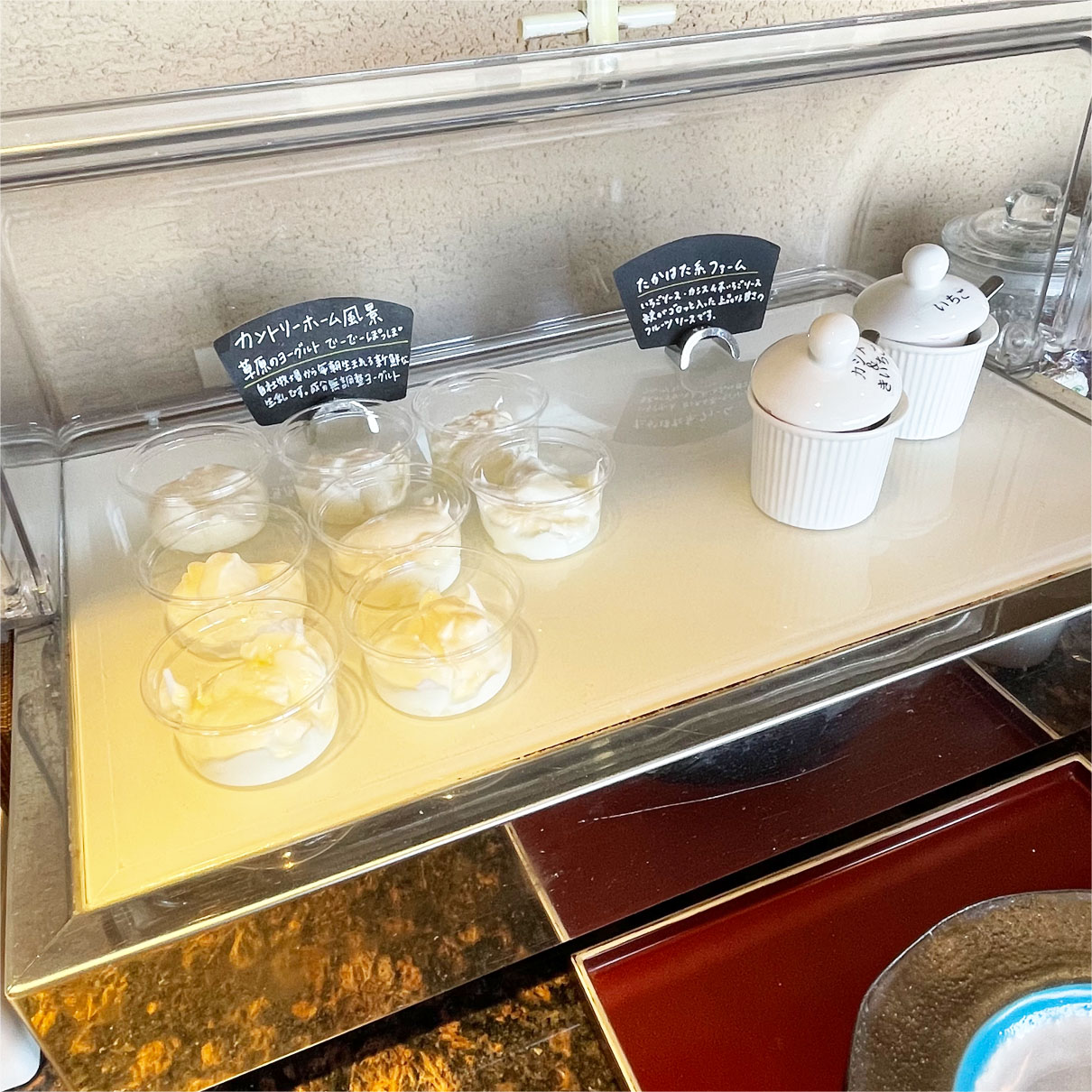そして部屋へ戻る途中にラウンジへ寄ってみたら、ケーキがヨーグルトに