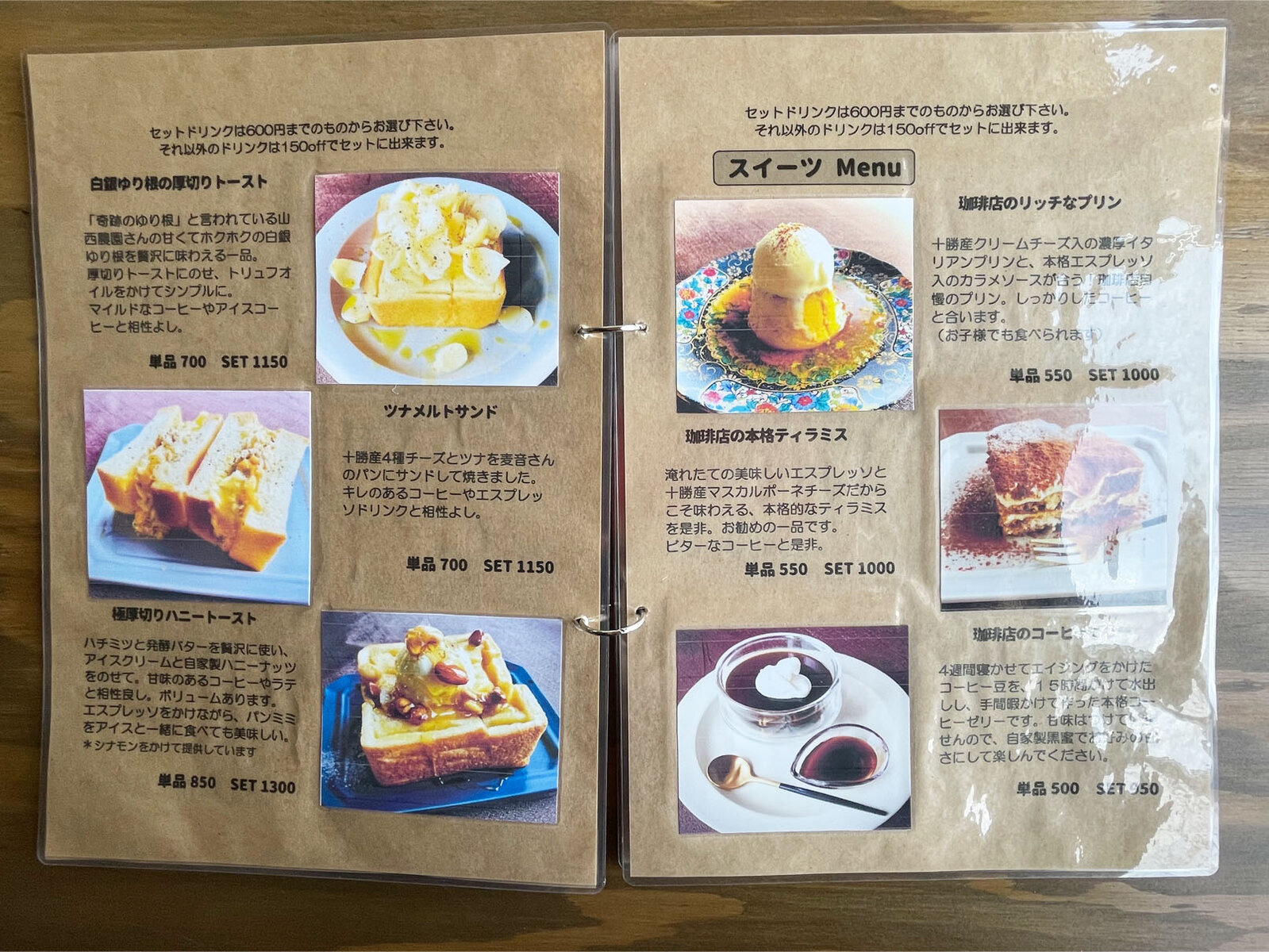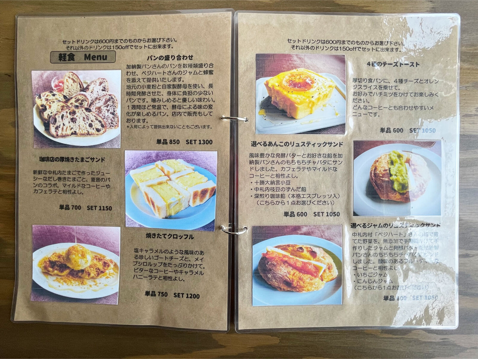 セットは600円以下のドリンクから選び、それ以上だと150円offでオーダー可能です。