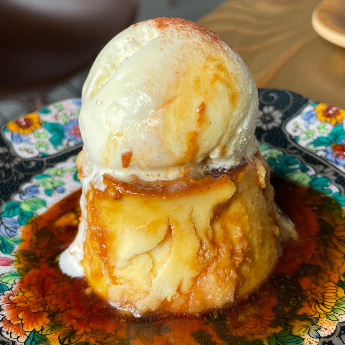 しっかりとした固さの濃厚プリン。エスプレッソ入のカラメルソースは