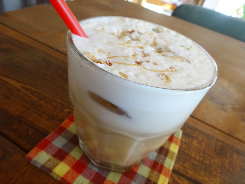 上には細かいナッツが乗っていて、ストローで吸い込みきれない場合の為にスプーンも用意してくれました