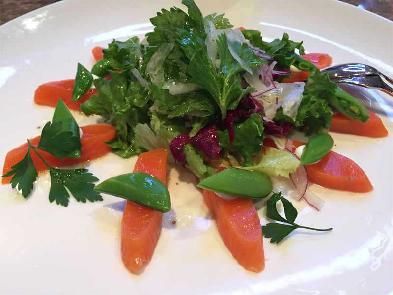 サーモンのハニーマスタードマリネ・サワークリームとサラダ添え