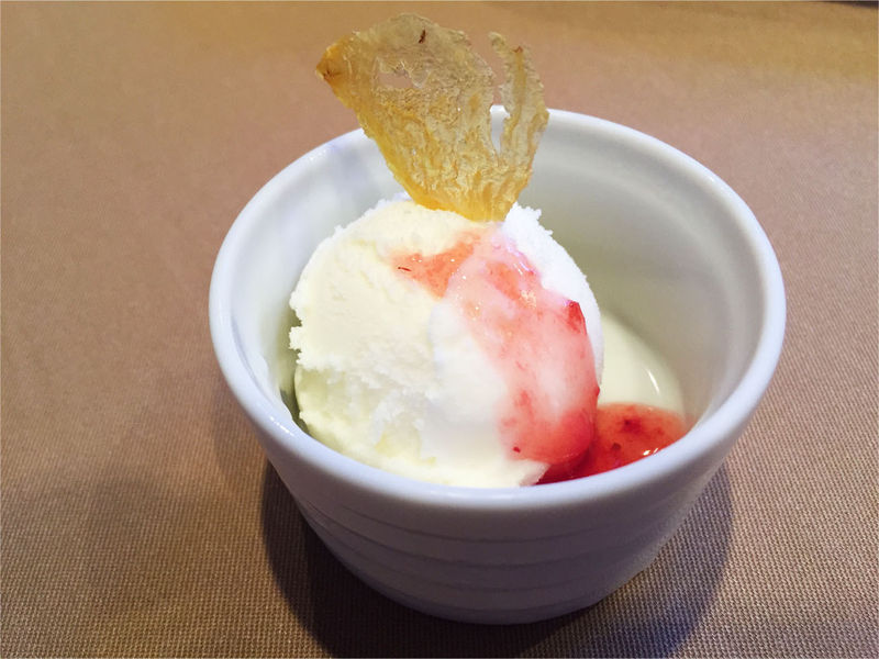 北海道産ミルクジェラート・パイナップルのチップ添え