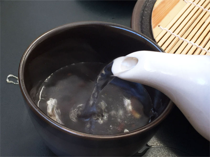 その後は寸胴鍋で8時間煮込んで肉質をやわらかくし、一本一本手作業で肉をほぐしながら余計な脂や