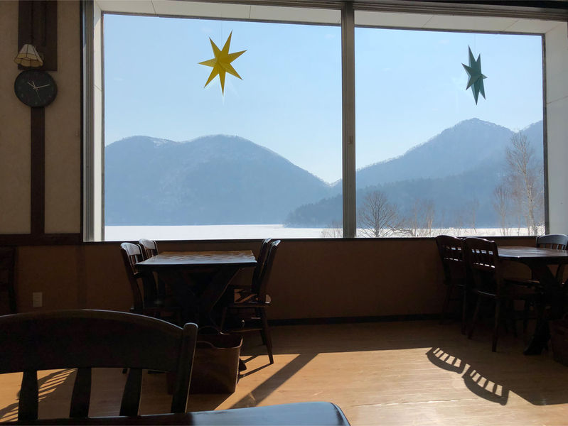店内からは然別湖を一望できます