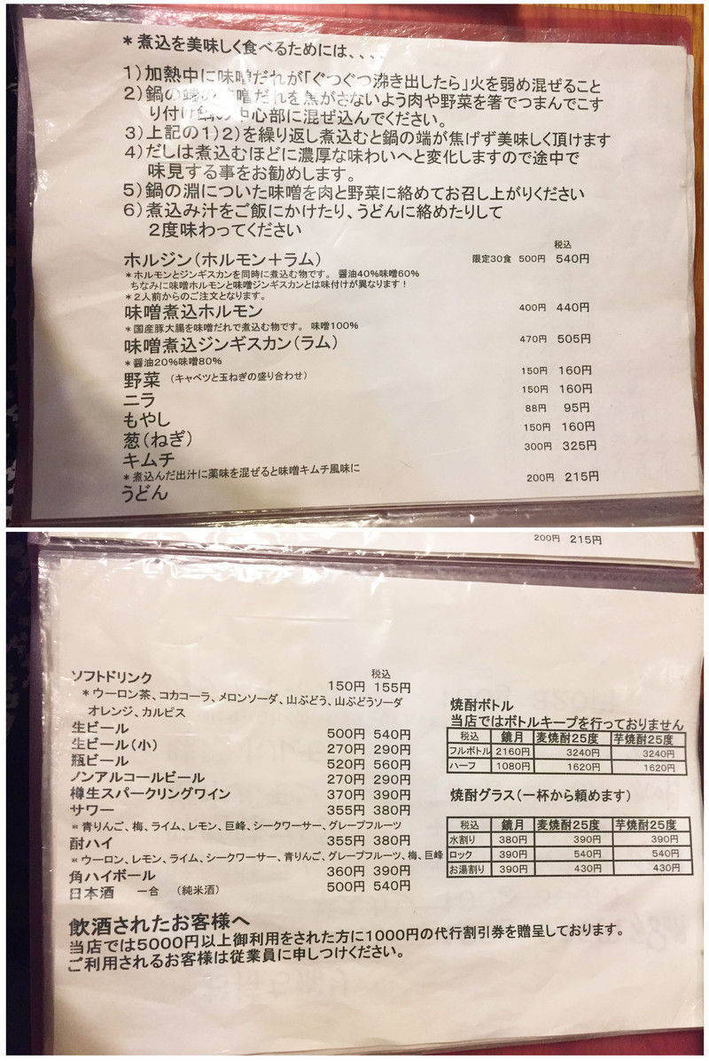 ホルジンとゆーメニューはありますが、単品でも味噌煮込みホルモンと味噌煮込みジンギスカンがあります。