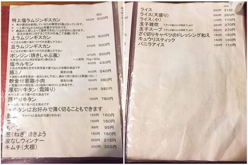 ポンジン(500円)厚切り牛タン霜降り(980円)