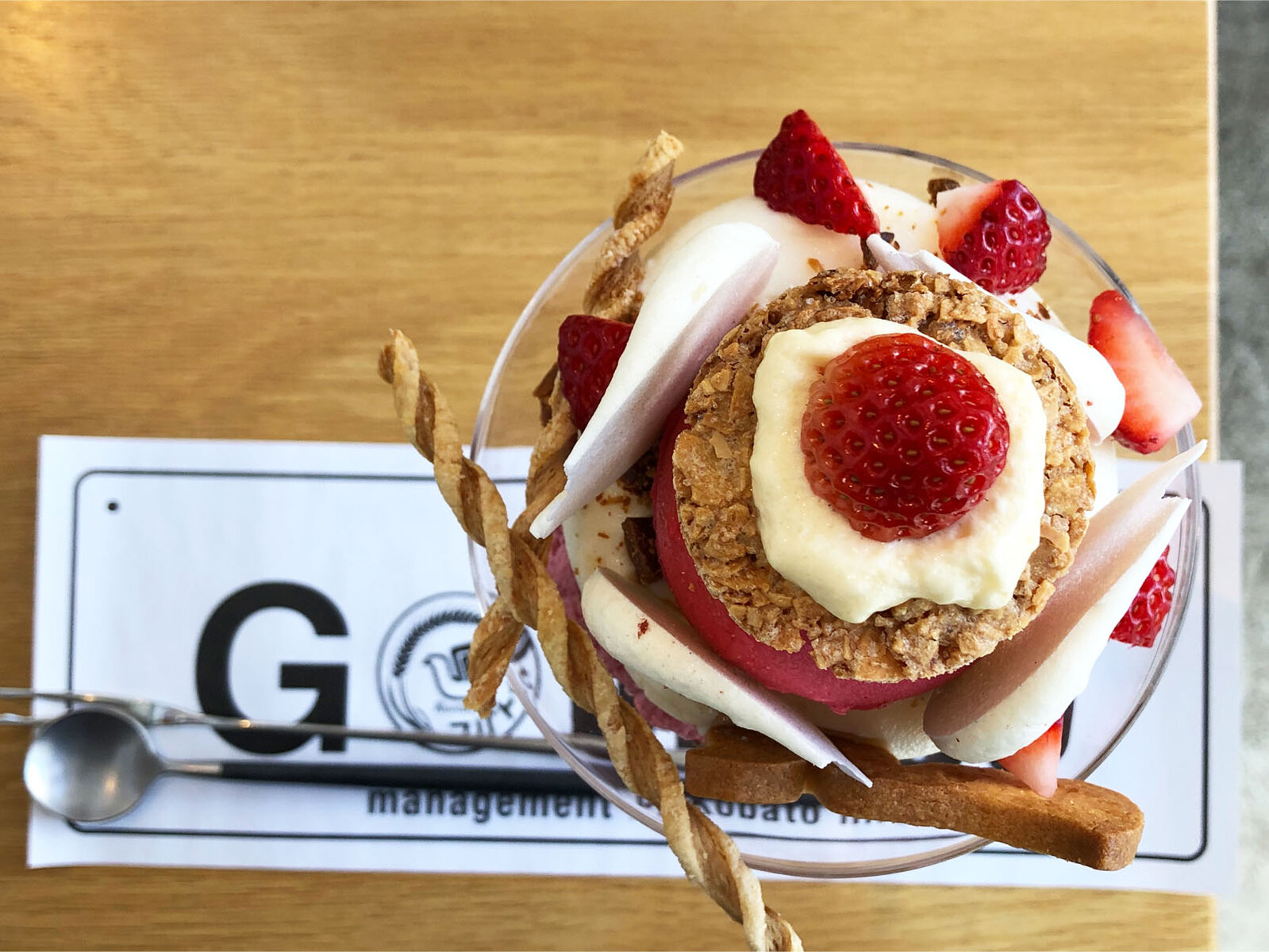 洋と和の見事なコラボパフェ!フランボワーズソルベがさっぱりしていて