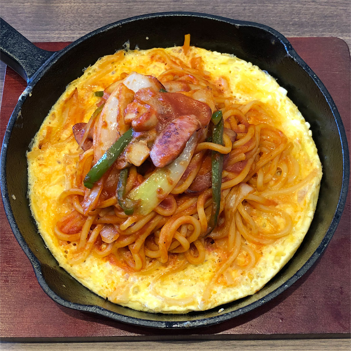 鉄板はジュージューではありませんが、鉄板一面に敷かれた卵が