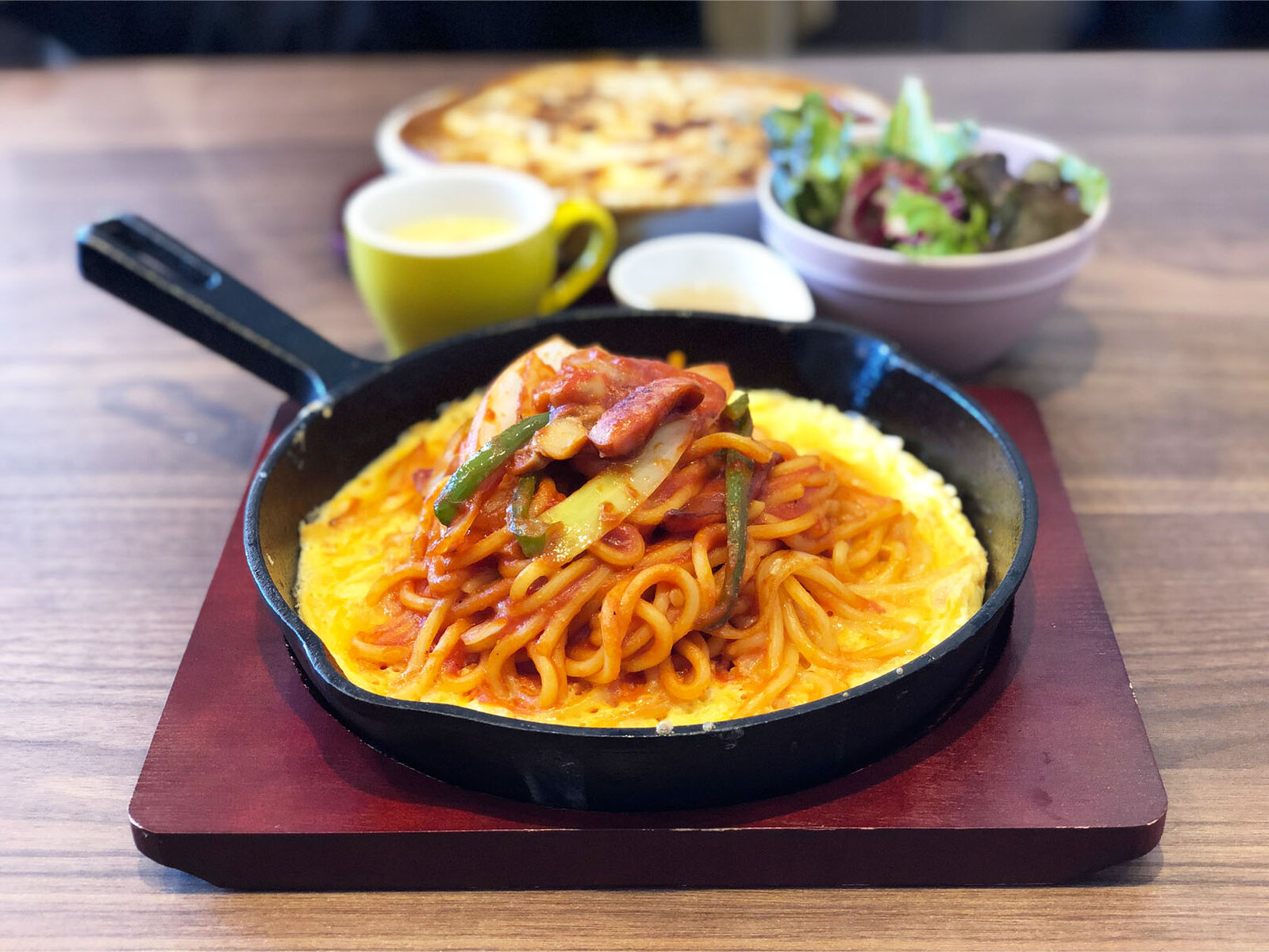 創業からの看板メニューで、特製ケチャップで仕上げたモチモチ太麺と熱々たまご