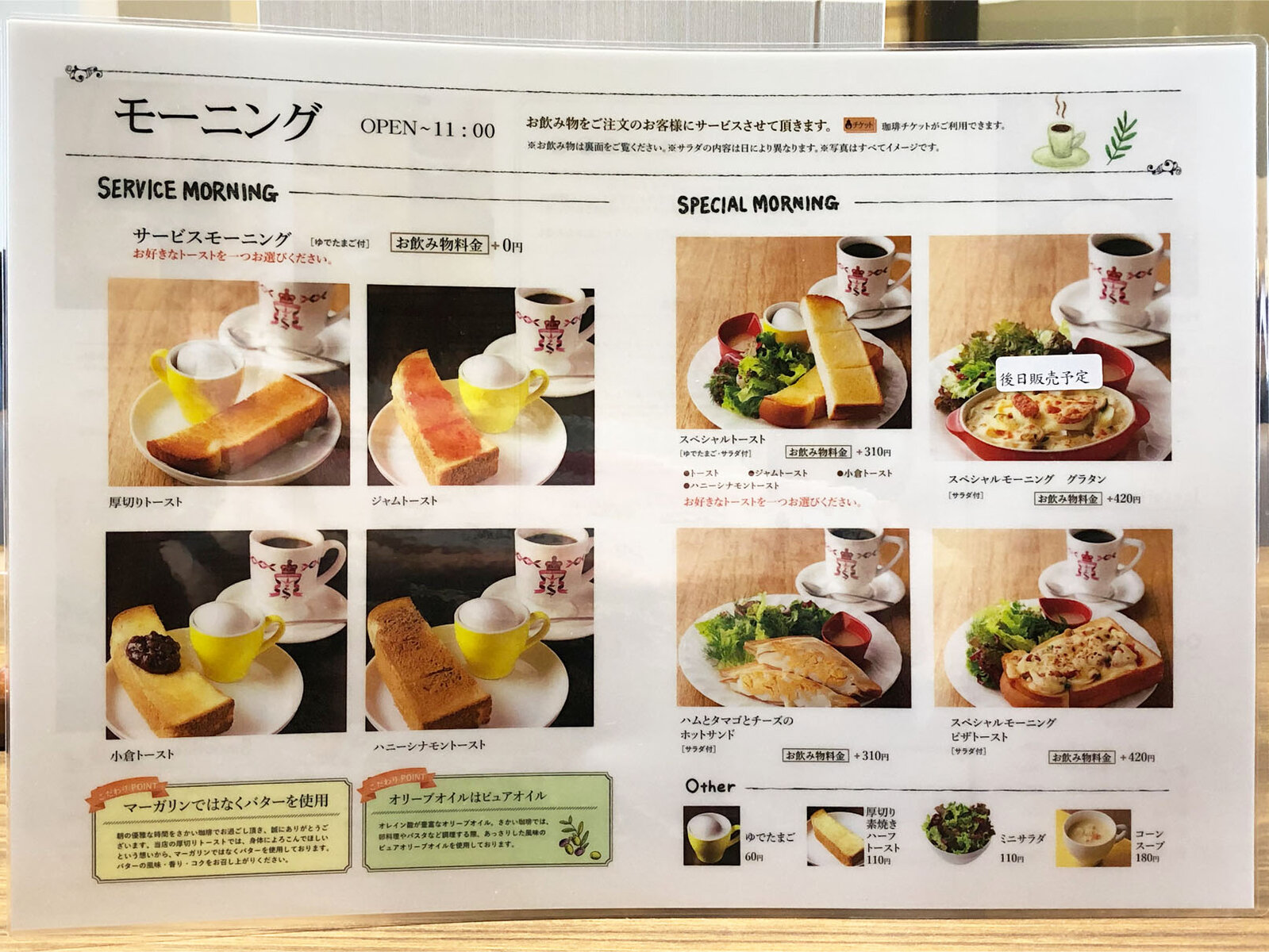モーニングは9:00~11:00