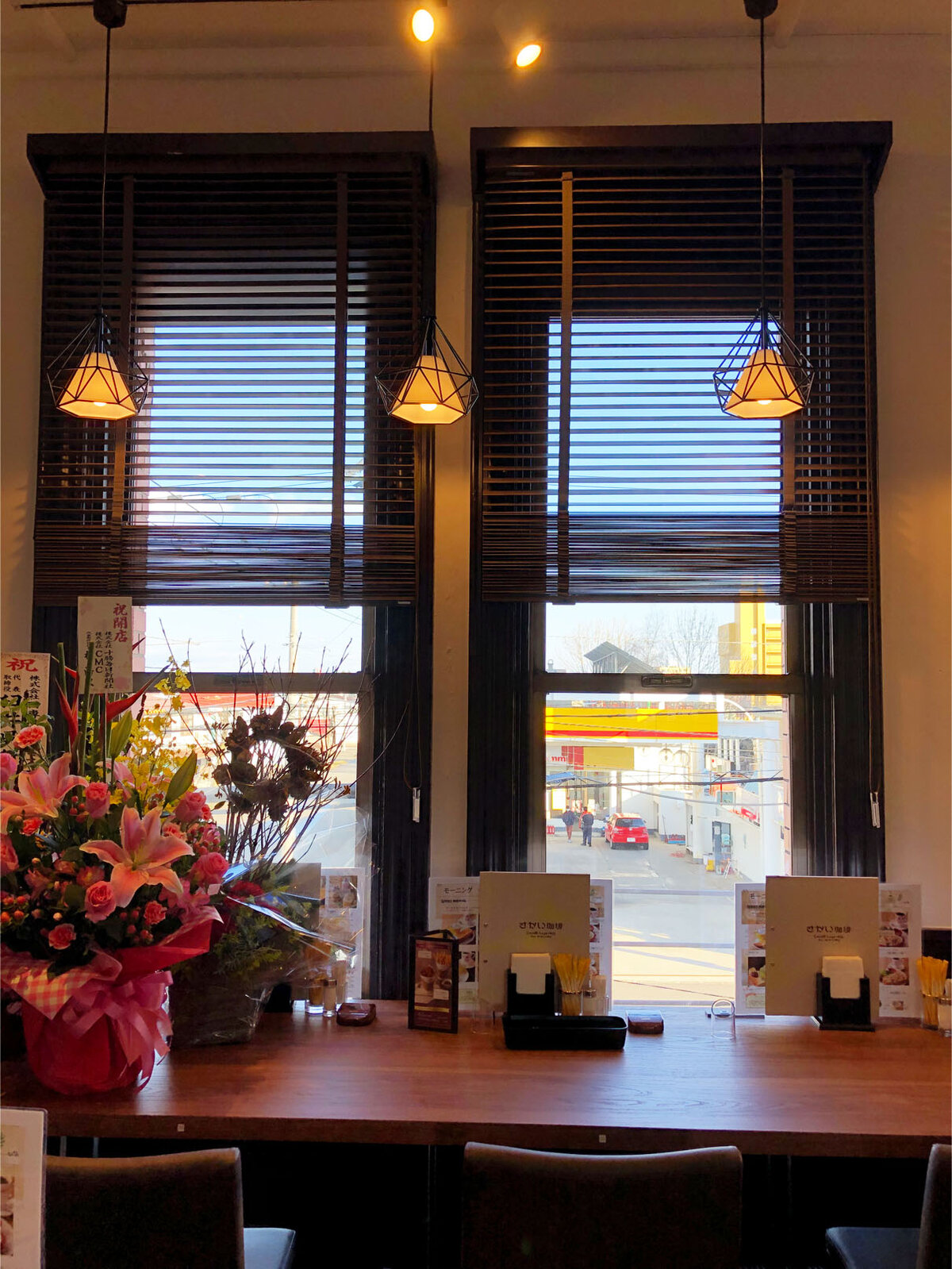 2階は、西2条通りに面した窓際にカウンター席があり、