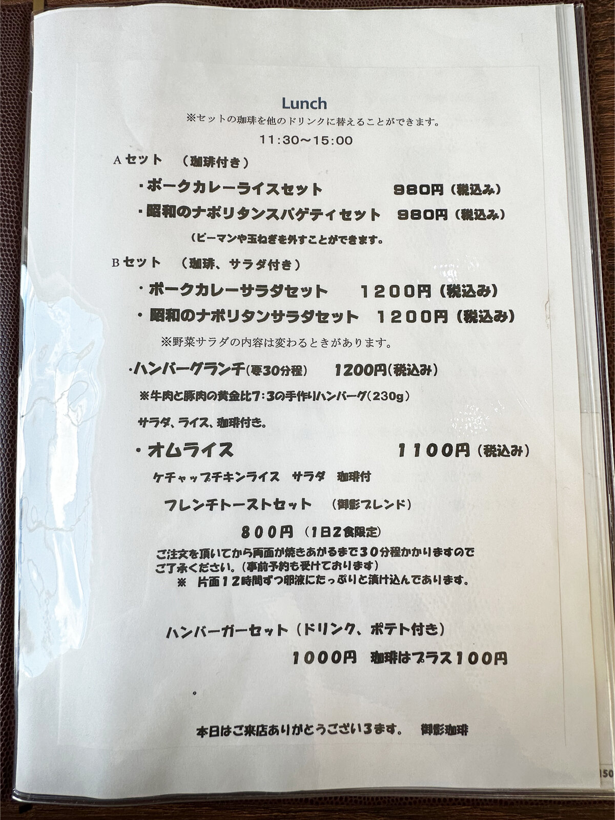 洋食屋のハンバーグ(1080円)