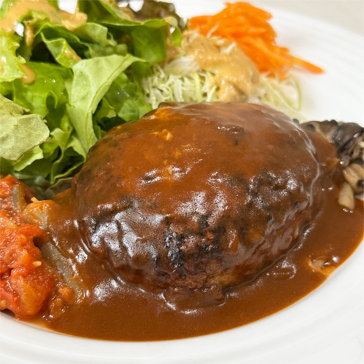 ご覧の通り、肉汁たっぷりのふわふわハンバーグです。
