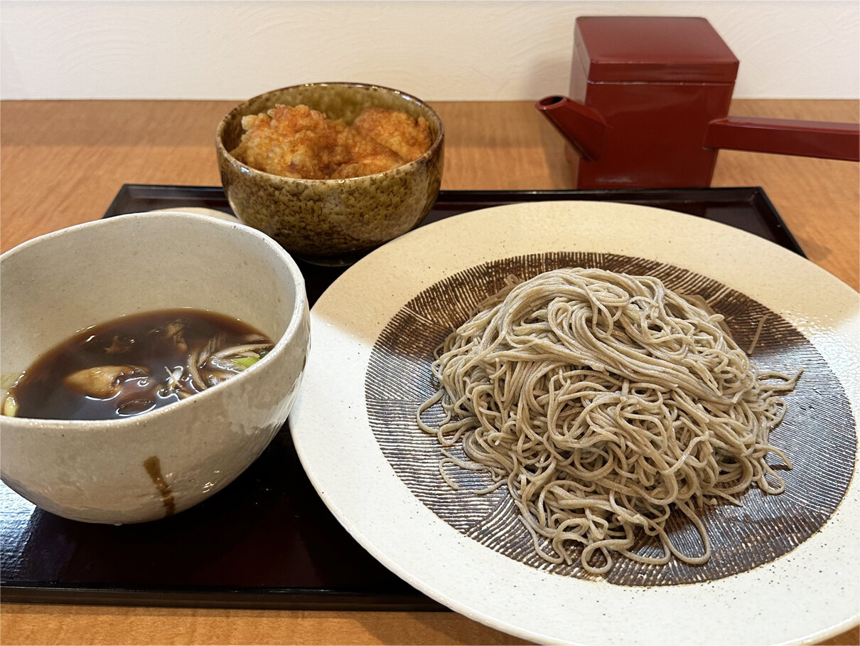つけ牡蠣蕎麦(1300円)・とり天丼ミニ(500円)