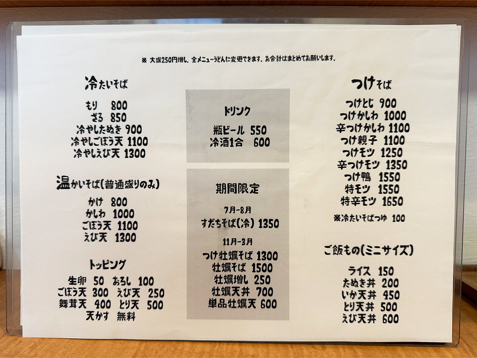 以前は太いお蕎麦もあったはずですが、メニューから消えていましたー。