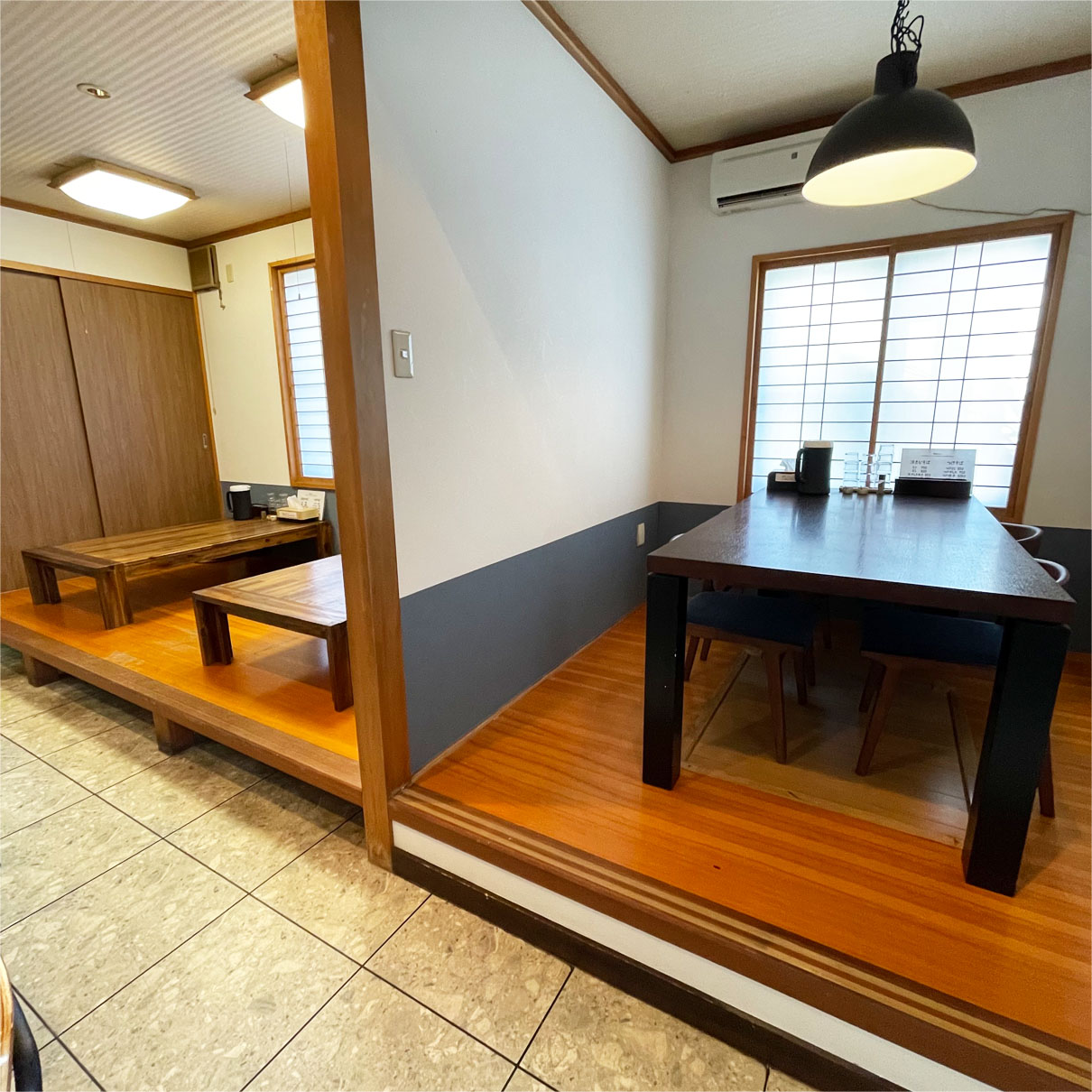 店内はイス席とカウンター席と小上がり席のイスと座布団の席があります。