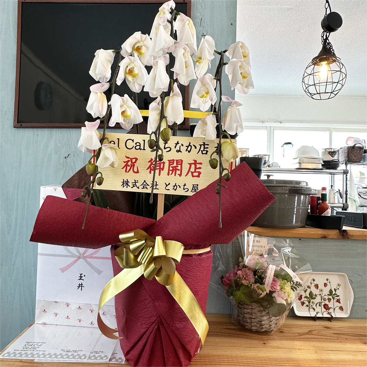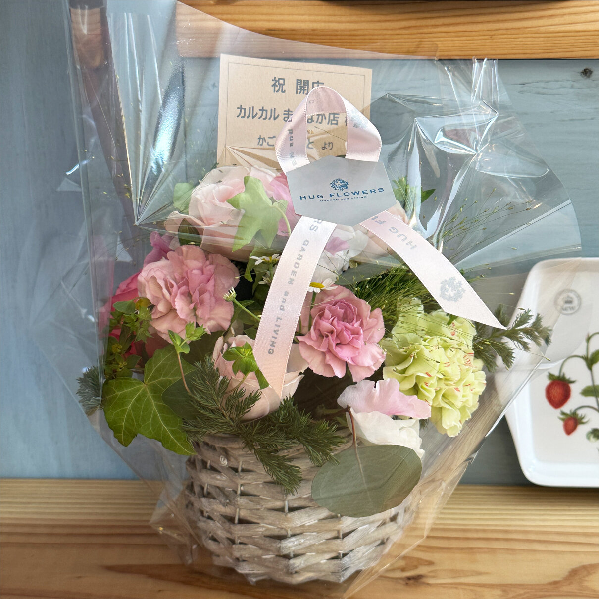 左のとかち屋さんのお祝いのお花と、右のあたしの花を 笑