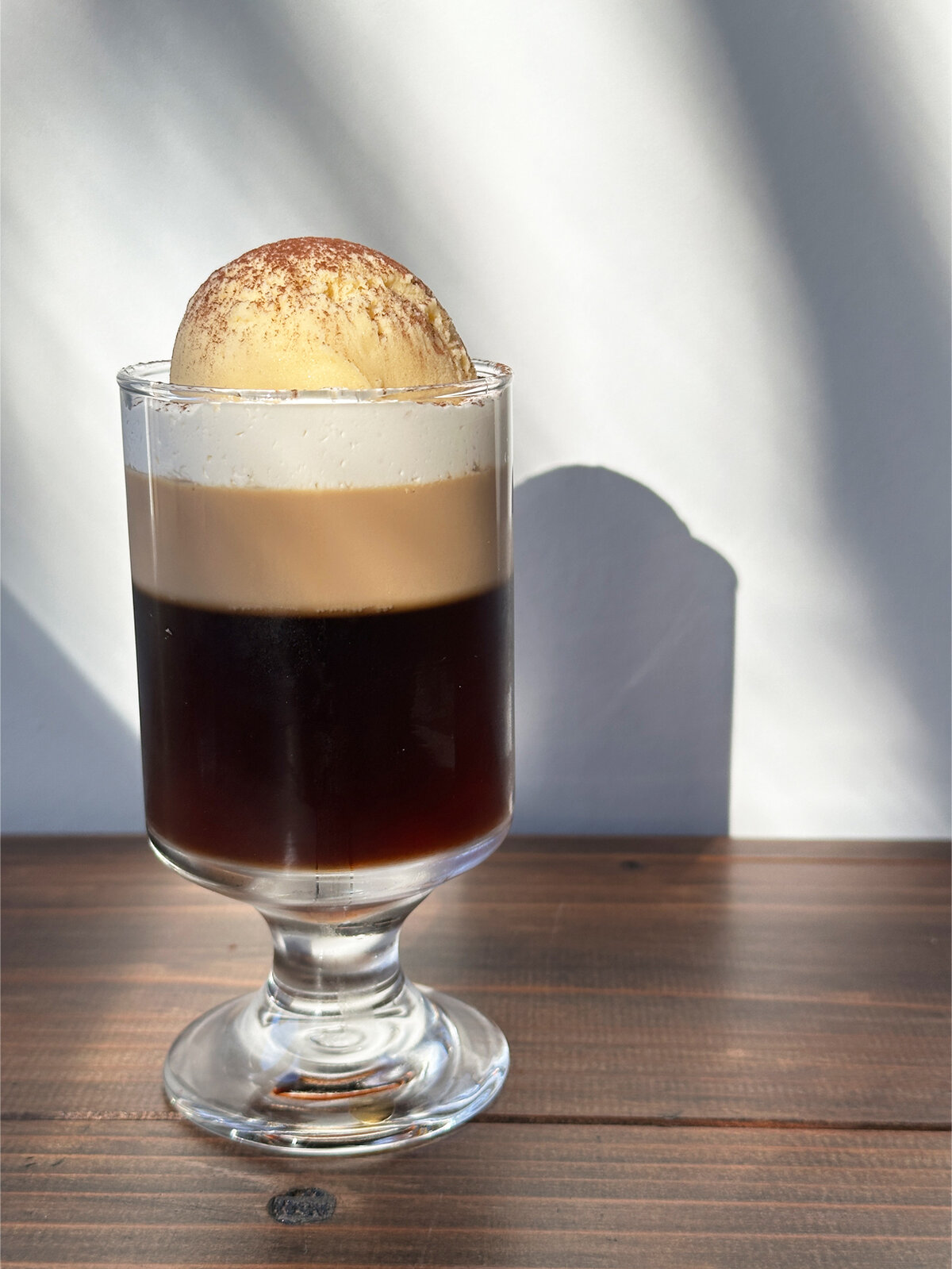 下から珈琲ゼリー、カフェラテゼリー、生クリーム、自家製アイス です。