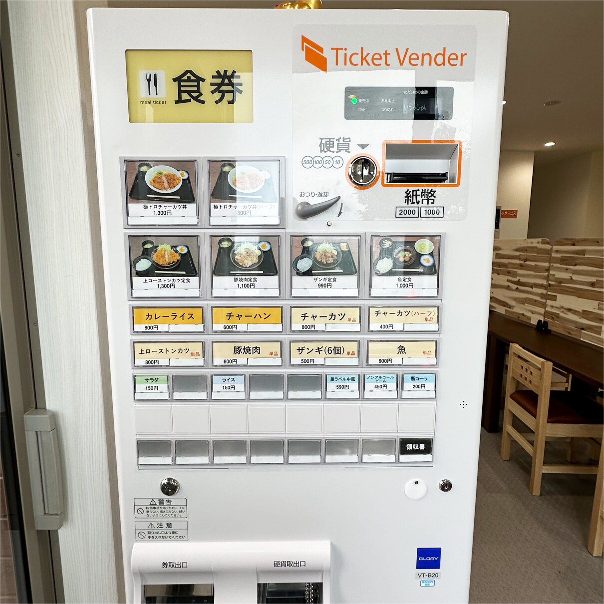 まず、入口入ってすぐの券売機で食券を購入し、スタッフの方へ渡します。