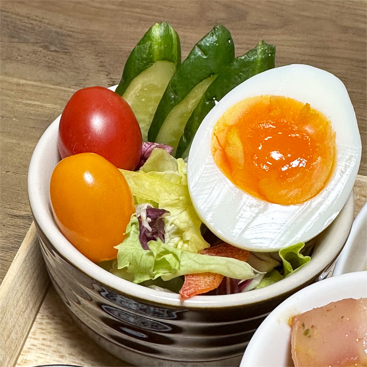 半熟卵が上手に出来た事に自分に拍手( ゚∀゚ )ハァーハッハッ!!菜の花ごはん