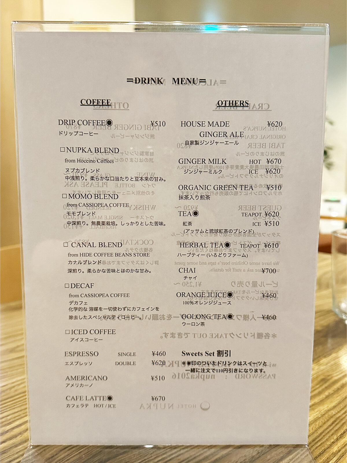 ヌプカブレンド(510円)・アイスカフェラテ(670円)
