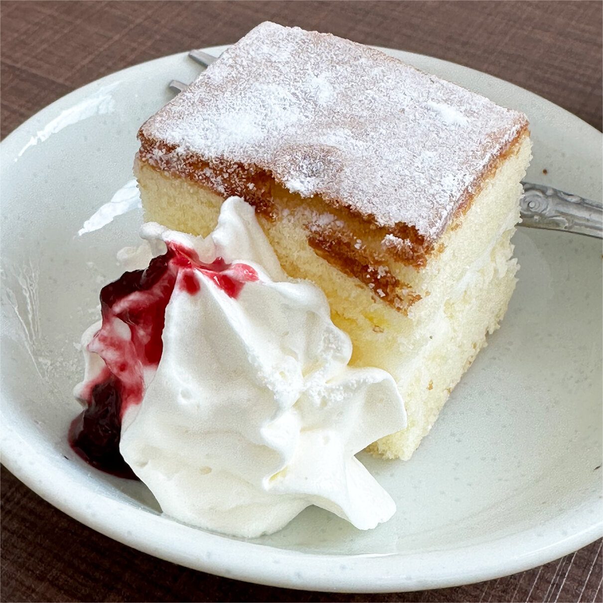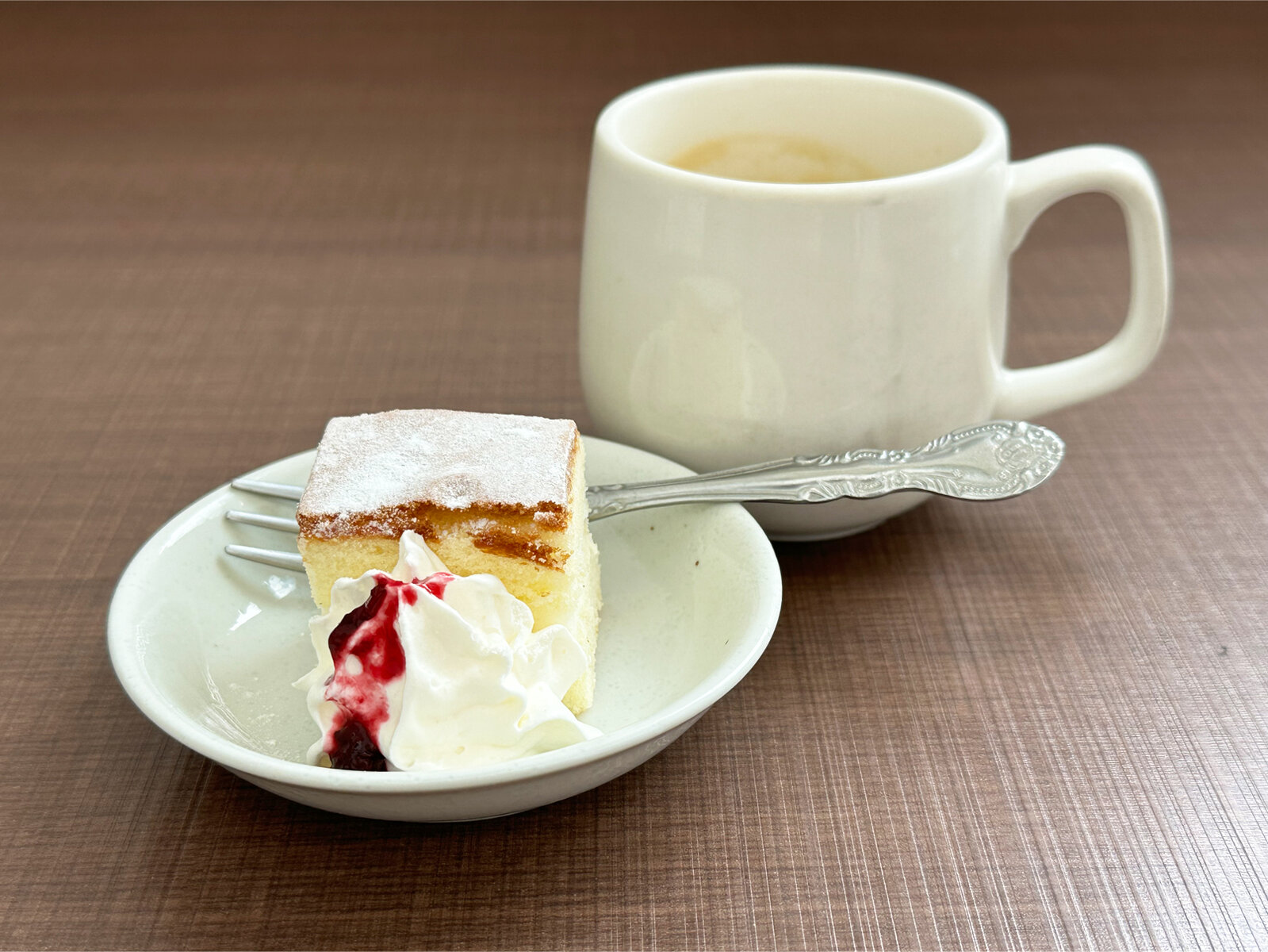 セットのケーキとサービスのコーヒーでデザートタイムです♪