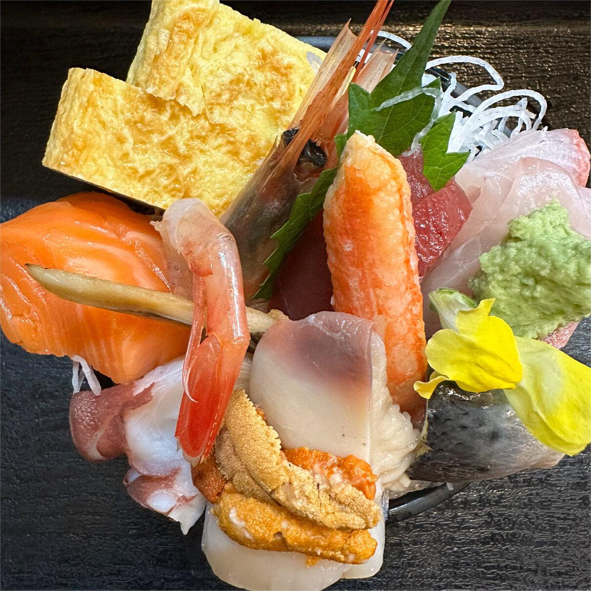 つまとお刺身が乗ってるとゆー、変わった海鮮丼なんです!