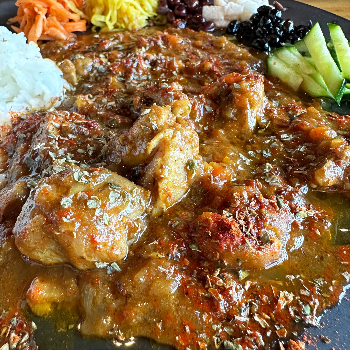 柔らかく煮込まれたチキンがごろごろ入りほどよい辛みとスパイスの香りが