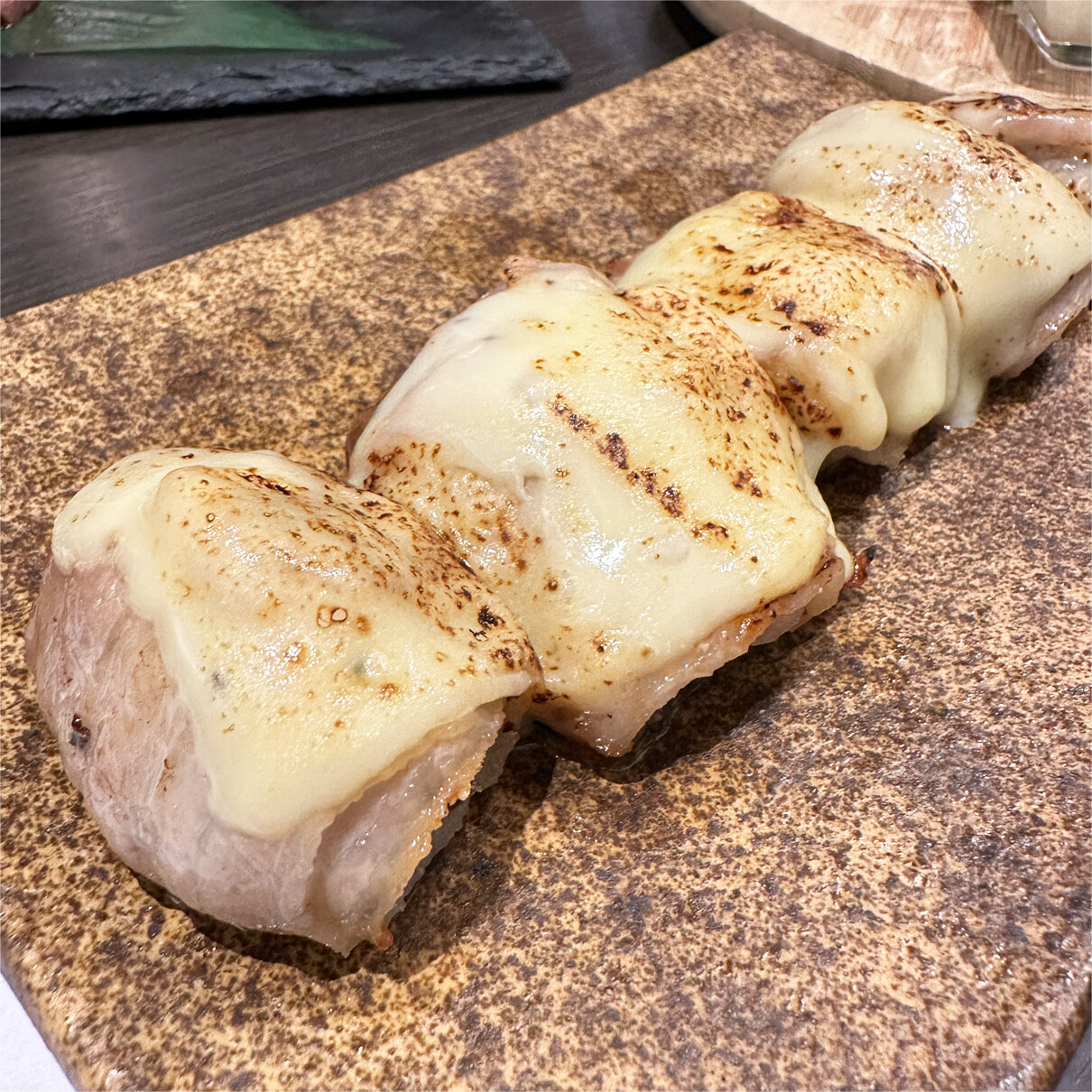インカのめざめを豚肉で巻き、チーズを乗せ炙ってます。