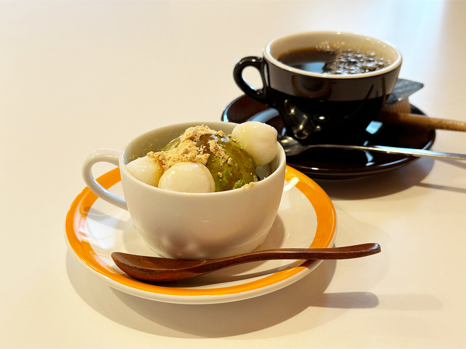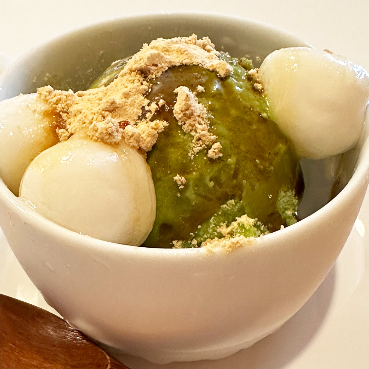 抹茶アイスクリーム&白玉(きな粉・黒糖蜜かけ)