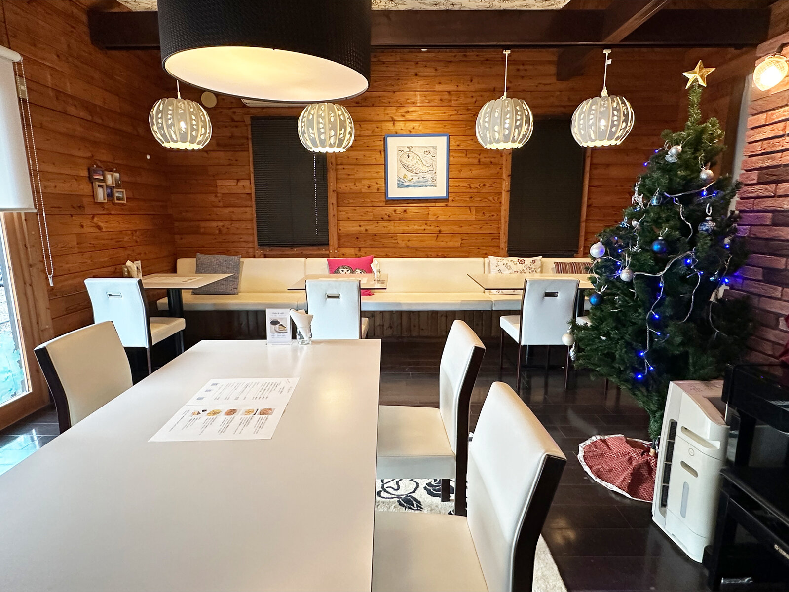 すいません。クリスマス時期に訪問した時のツリーありの店内です。