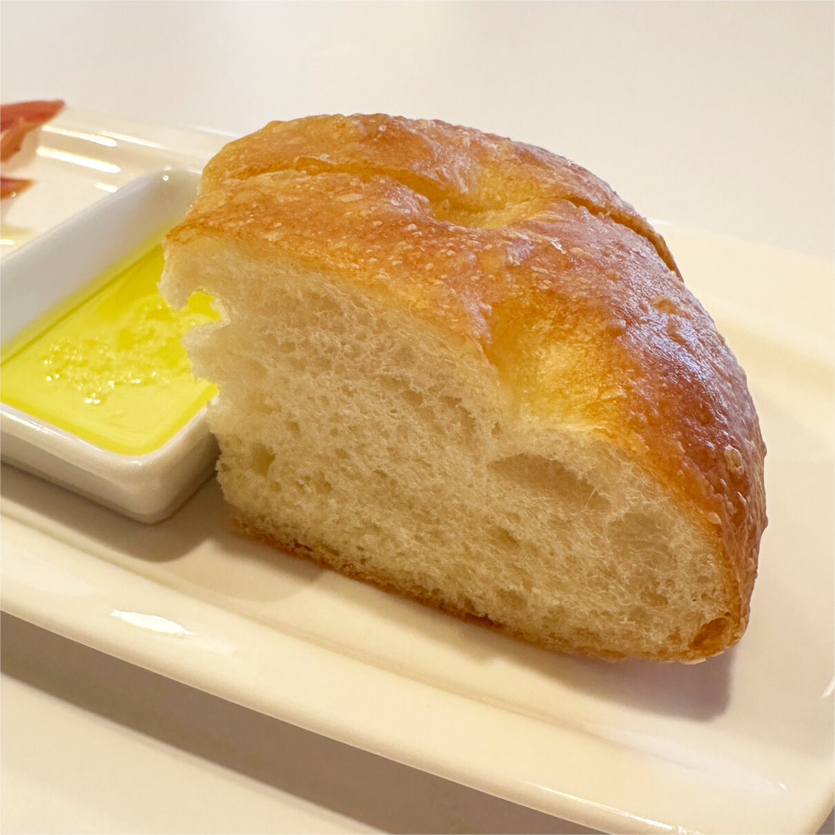 オリーブオイルに付けて食べるフォカッチャも美味しいのですが